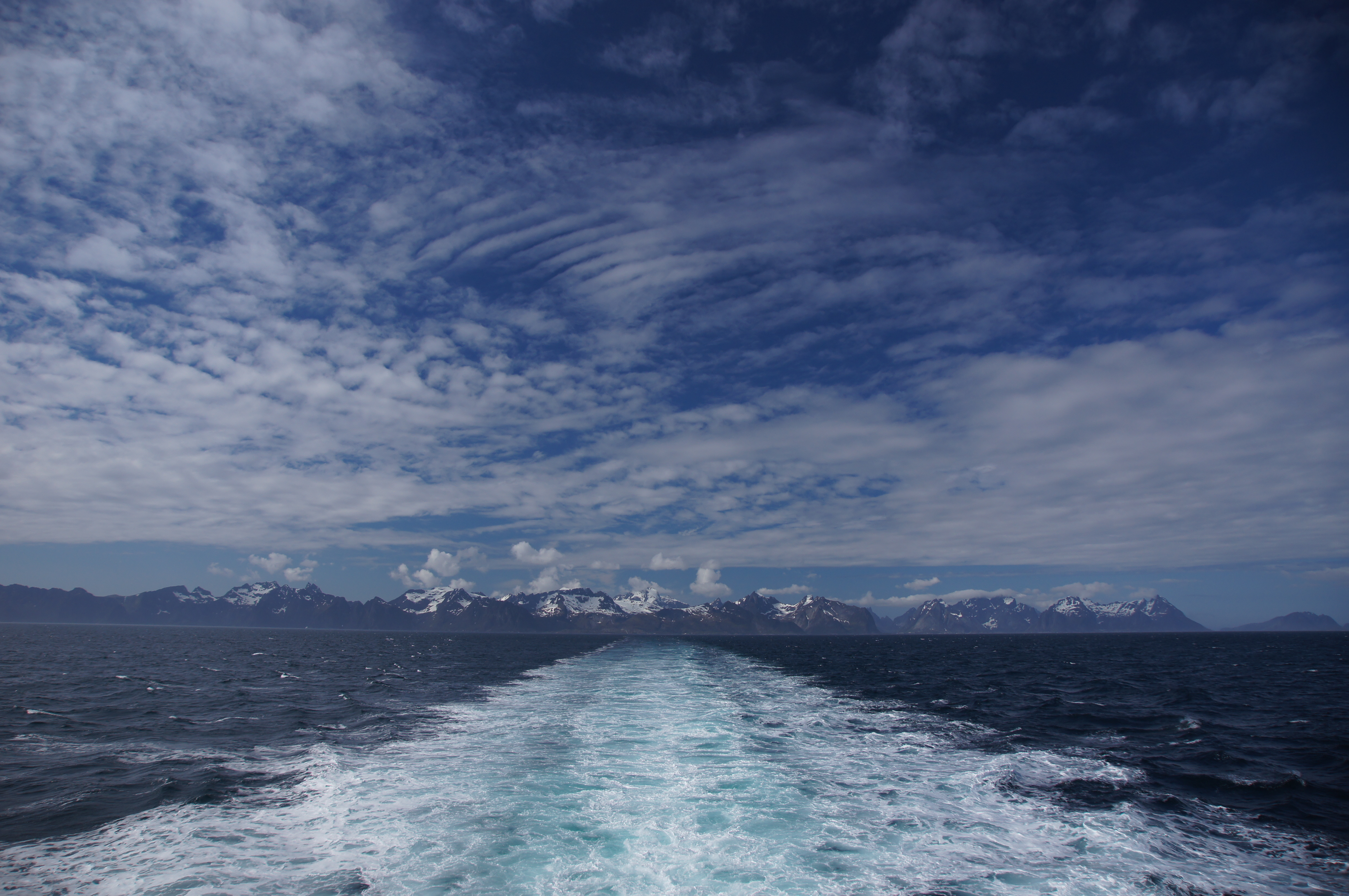 Zumindest war es dann ein sonniger Tag, als nachmittags die Fähre nach Bodø einlief. Auf dem Aussichtsdeck des Schiffes durften wir nochmal einen wunderschönen Blick zurück auf die schneebedeckten Gipfel der Lofotenwand genießen. Für den späten Nachmittag hatten wir (wenig preiswerte) Flüge zurück über Oslo buchen können. Leider strandeten wir dann eine weitere Nacht am Flughafen Gardemoen in Oslo, bevor wir am Montag über einen weiteren Zwischenstopp in Kopenhagen gegen Mittag wieder in Deutschland landeten.