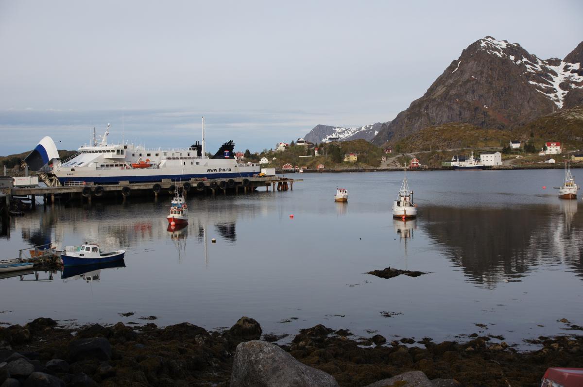 Der Fähranleger in Moskenes auf den Lofoten wird von öffentlichen Buslinien angefahren, die wir ins wenige Kilometer entfernte Reine nutzten. Alternativ befindet sich nur 50m vom Fähranleger in Moskenes ein Mietwagenverleih, den wir selbst vor Ort für einige Tage gerne in Anspruch angenommen haben.