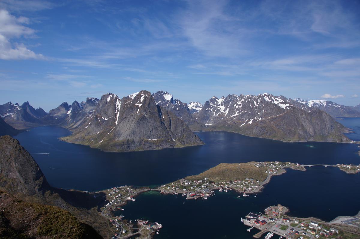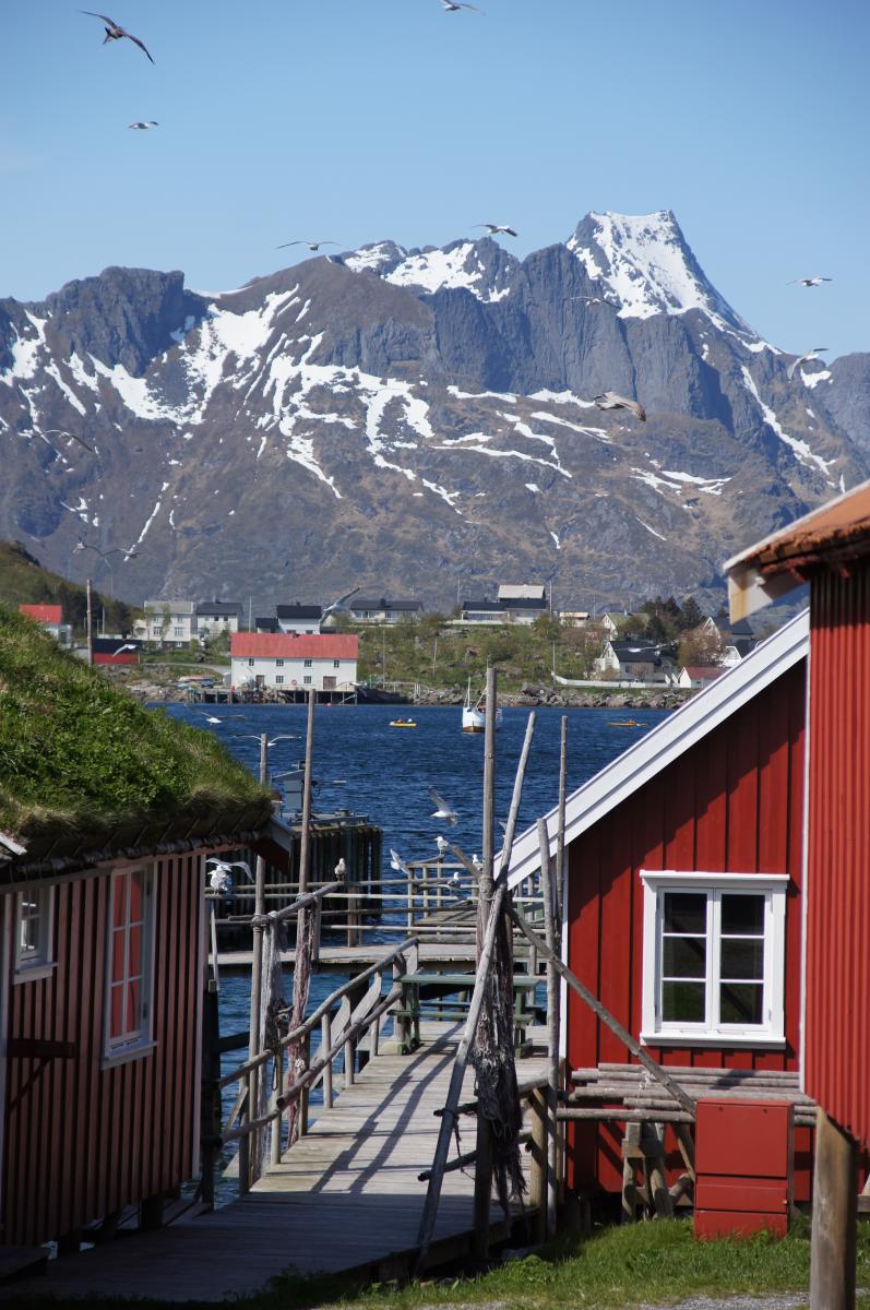 Die Fischersiedlung Reine liegt gemeinsam mit Hamnøy über mehrere Schäreninseln verteilt um den Eingang des gleichnamigen Fjords und bietet ein sensationelles Panorama auf den Kjerkfjord und die umgebenden Berge, die wegen ihres steilen Aufragens aus dem Meer auch als "Lofotenwand" bezeichnet werden. Natürlich schlug sich diese bevorzugte Lage im Unterkunftspreis nieder.