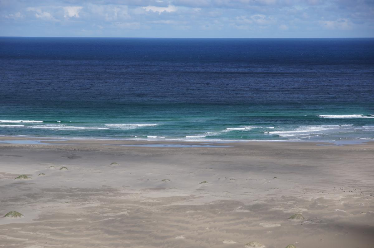 über Jahrzehnte angeschwemmt, fanden wir im Sand: kugelrunde (entschärfte) Schiffsminen aus den letzten Weltkriegen lagen unregelmäßig verstreut neben allerlei Ausrüstungsgegenständen und natürlichem Treibgut, die Meeresströmung und Wind in dieser tief eingeschnittenen Bucht angelandet hatten.